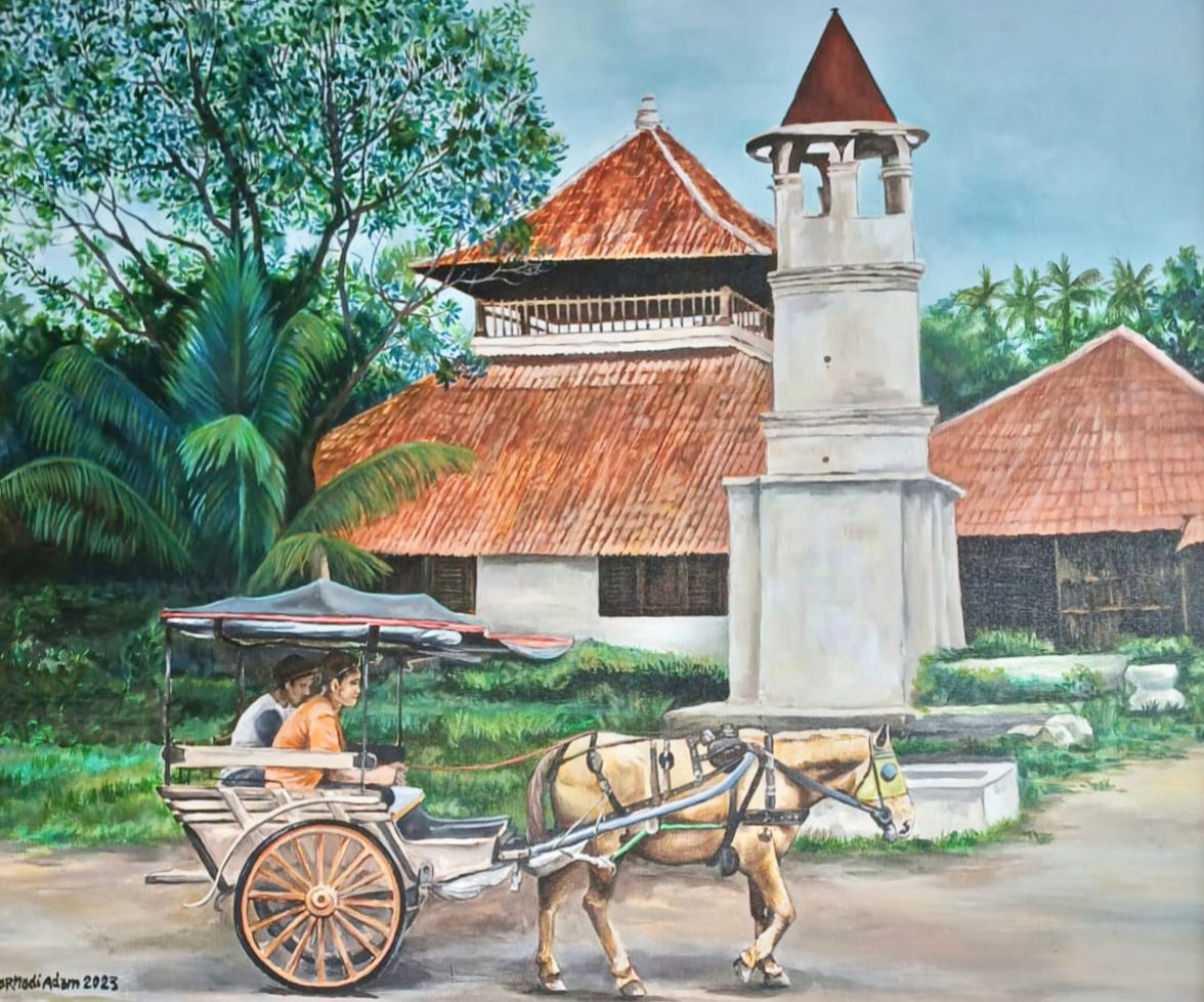 Salah satu lukisan karya H.Sarnadi Adam yang akan dipamerkan dengan objek Masjid & Delman