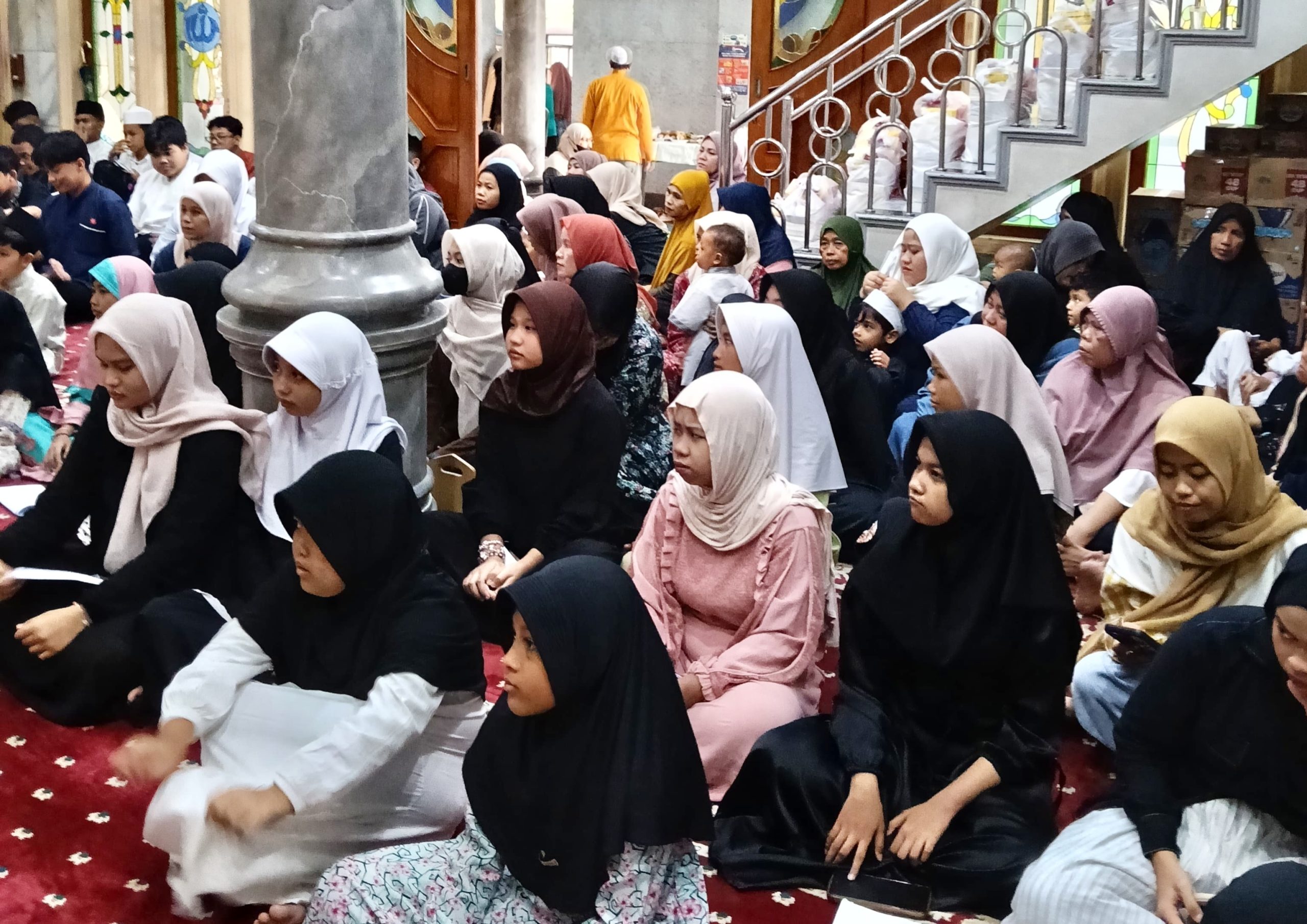 Kegiatan santunan berlangsung dengan tertib dan penuh kehangatan. Para penerima santunan terlihat antusias dan bersyukur atas bantuan yang diberikan.